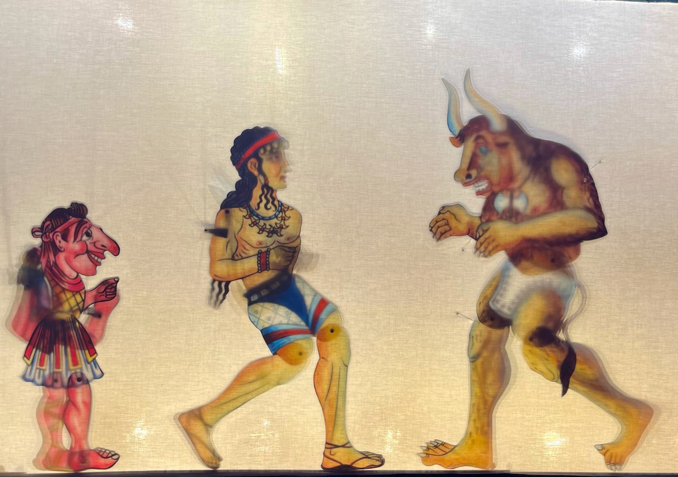 Όταν ο βασιλιάς Αιγέας τον καλεί να βοηθήσει τον Θησέα να ταξιδέψει στην Κρήτη και να αντιμετωπίσει τον τρομερό Μινώταυρο, ο Καραγκιόζης δεν μπορεί να αρνηθεί. Με την Αριάδνη, το μαγικό κουβάρι και τις έξυπνες ατάκες του, καταφέρνει να μπερδέψει το τέρας και να σώσει την Αθήνα — πάντα με τον δικό του, ξεκαρδιστικό τρόπο!