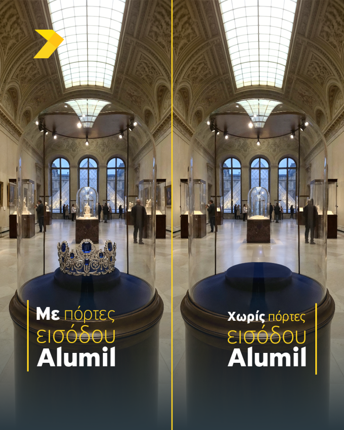 Με αφορμή το περιστατικό, η εταιρεία κυκλοφόρησε ένα έξυπνο meme: το διάσημο στέμμα πίσω από γυάλινη προθήκη, συνοδευόμενο από το σχόλιο ότι… «αν είχαν πόρτες εισόδου ALUMIL RC3, όλα θα ήταν ακόμη στη θέση τους». Απλό, εύστοχο και απολαυστικά ειρωνικό.