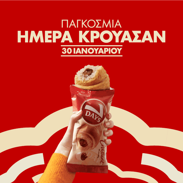 Το 7DAYS, το πρώτο συσκευασμένο κρουασάν που παρασκευάστηκε στην Ελλάδα, μας καλεί σήμερα να κάνουμε ένα διάλειμμα από τη ρουτίνα και να γιορτάσουμε τη χαρά του απλού. Με τη χαρακτηριστική μαλακή ζύμη, τις απολαυστικές γεμίσεις και τη σταθερή ποιότητα που το έχει καθιερώσει εδώ και περισσότερα από 30 χρόνια, το 7DAYS δεν είναι απλώς ένα σνακ — είναι εκείνη η μικρή καθημερινή ανταμοιβή που κάνει τη μέρα να ξεκινά καλύτερα.