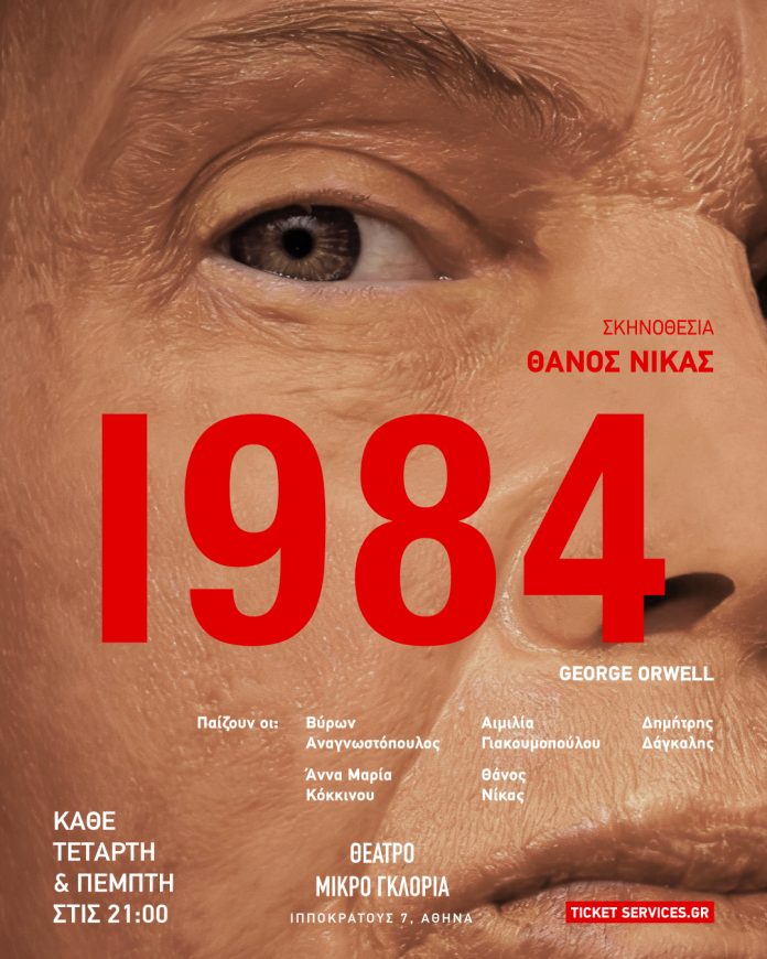 Το εμβληματικό έργο «1984» του George Orwell ανεβαίνει στο Θέατρο Μικρό Γκλόρια, σε σκηνοθεσία Θάνου Νίκα, για περιορισμένο αριθμό παραστάσεων, από την Τετάρτη 4 Μαρτίου, κάθε Τετάρτη και Πέμπτη στις 21:00.