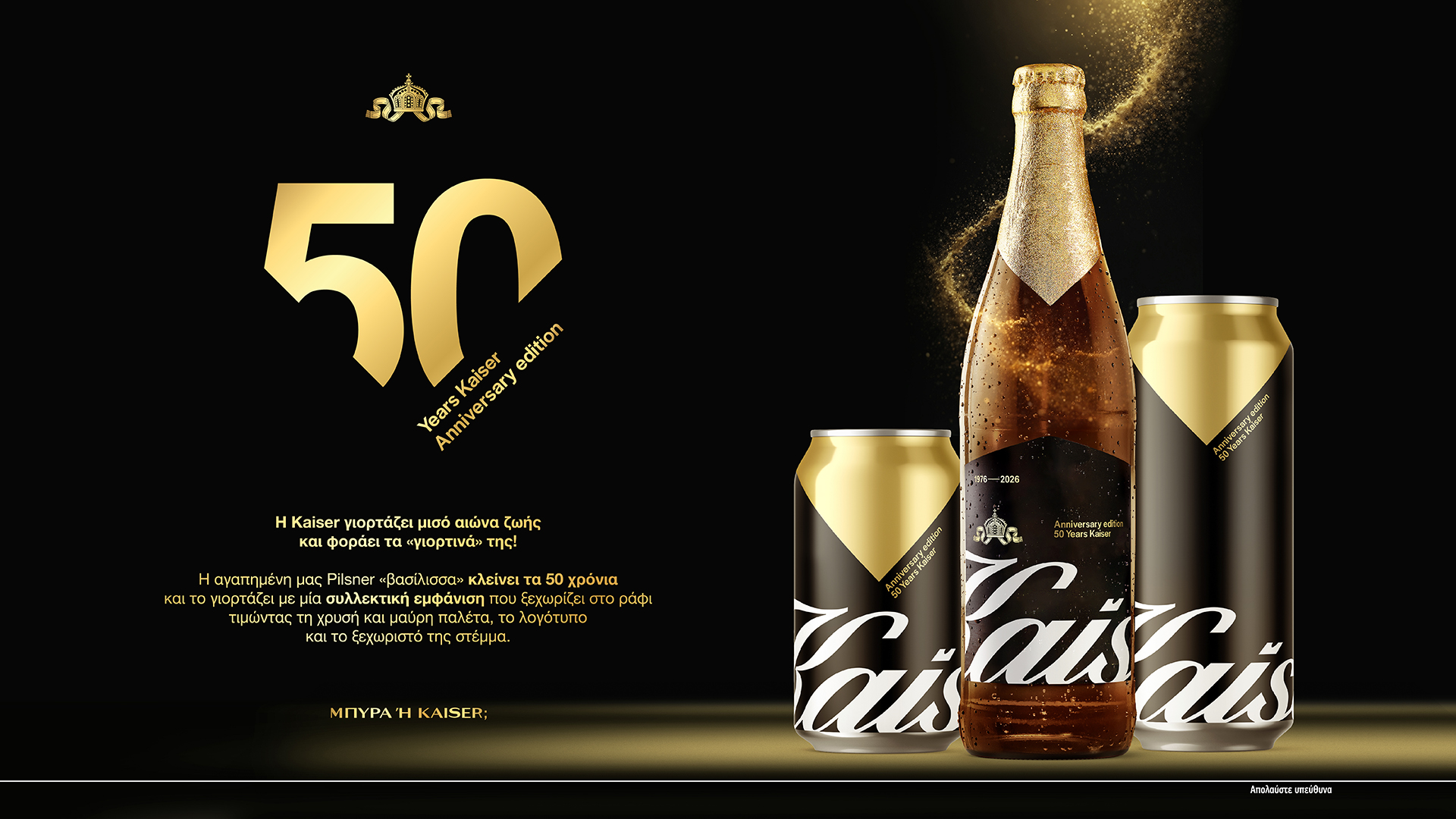Η Kaiser συμπληρώνει μισό αιώνα παρουσίας στην ελληνική αγορά μπύρας και σηματοδοτεί την επέτειο με μια ολοκληρωμένη 360° καμπάνια που συνδυάζει συλλεκτική εμφάνιση, τηλεοπτική επικοινωνία και διαγωνισμό για το κοινό.