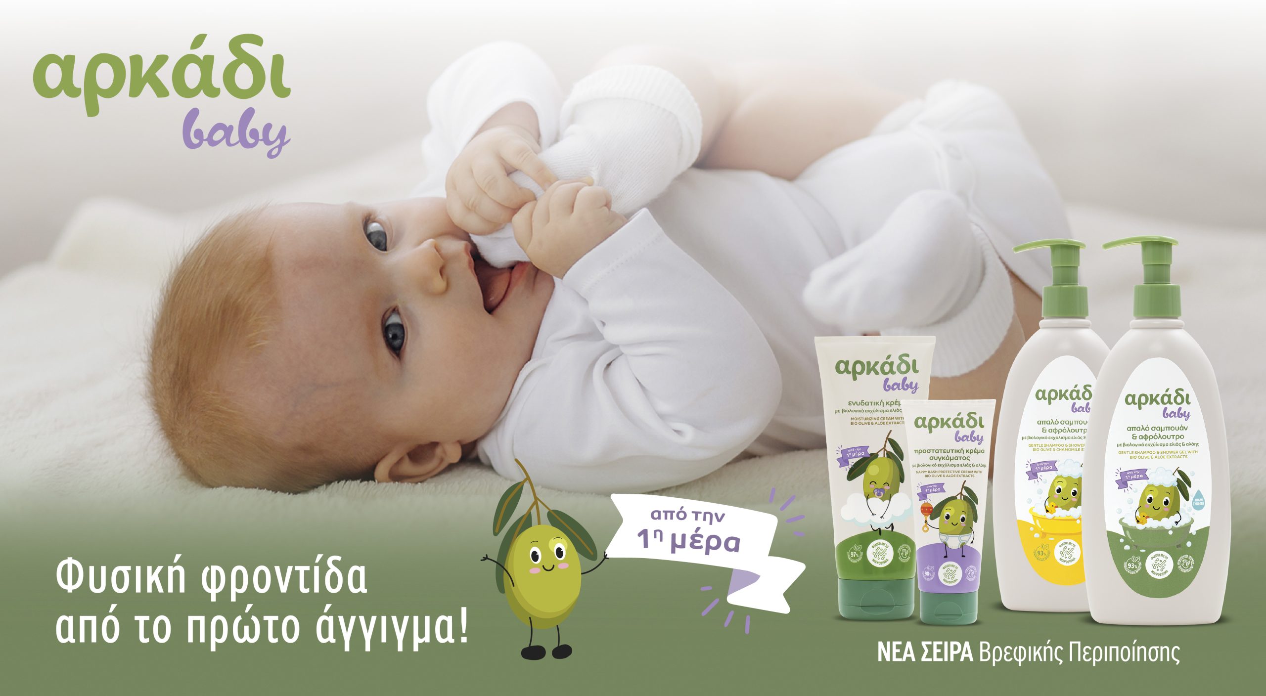 Το Αρκάδι, ένα brand-σύμβολο αγνότητας για περισσότερα από 80 χρόνια, ανοίγει ένα νέο κεφάλαιο στη βρεφική περιποίηση. Η νέα σειρά Αρκάδι Baby Care της Παπουτσάνης ΑΒΕΕ σχεδιάστηκε για να προσφέρει καθημερινή φροντίδα με απόλυτο σεβασμό στο ευαίσθητο δέρμα των νεογνών, συνδυάζοντας την παράδοση με τη σύγχρονη δερματολογική τεχνογνωσία.