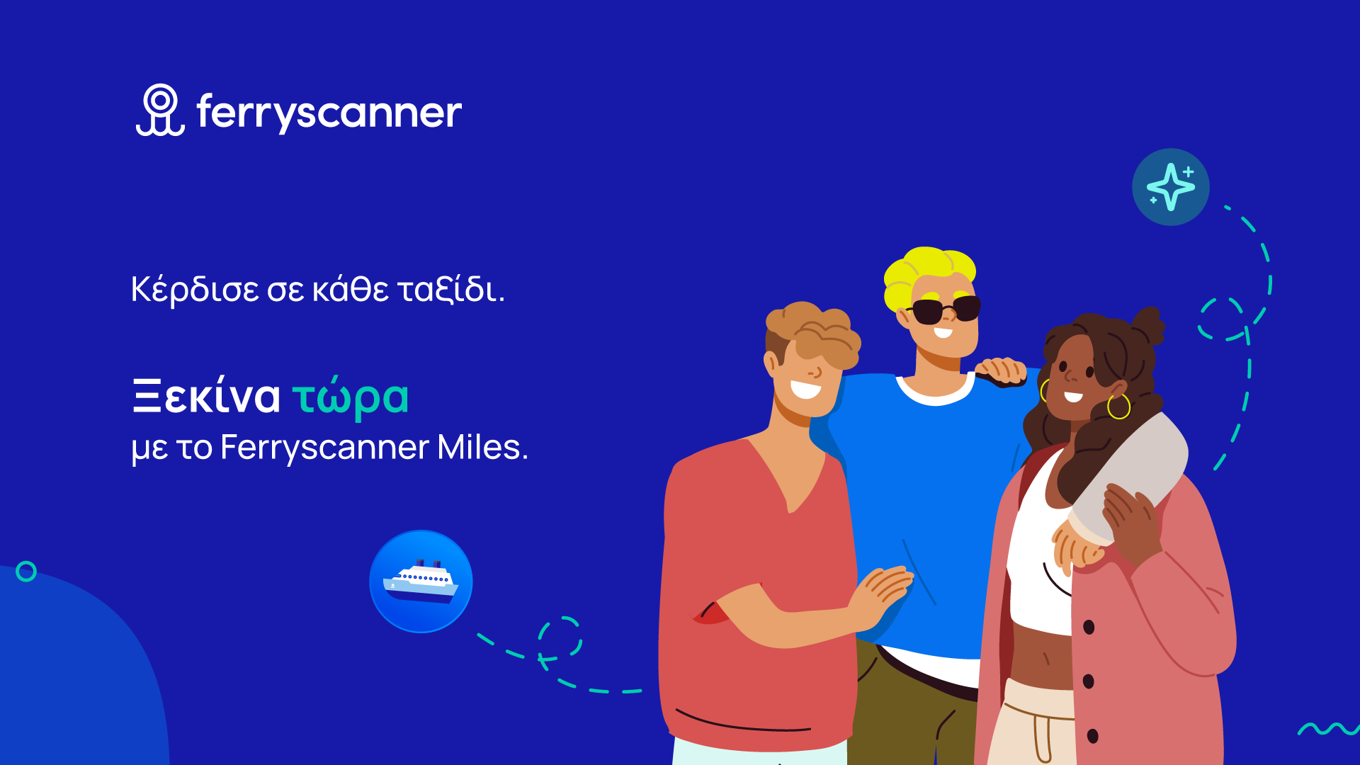 Η Ferryscanner παρουσιάζει το Ferryscanner Miles, ένα καινοτόμο πρόγραμμα επιβράβευσης που μετατρέπει κάθε ναυτικό μίλι σε πραγματική οικονομία. Οι εγγεγραμμένοι χρήστες της πλατφόρμας έχουν πλέον τη δυνατότητα να συγκεντρώνουν μίλια με κάθε ολοκληρωμένο ταξίδι και να τα εξαργυρώνουν ως άμεση έκπτωση στις επόμενες κρατήσεις τους, ανεξαρτήτως προορισμού ή ακτοπλοϊκής εταιρείας.