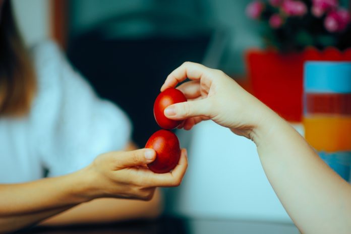 - Βάψιμο κόκκινων αυγών (συμβολίζουν τη ζωή και τη θυσία)
