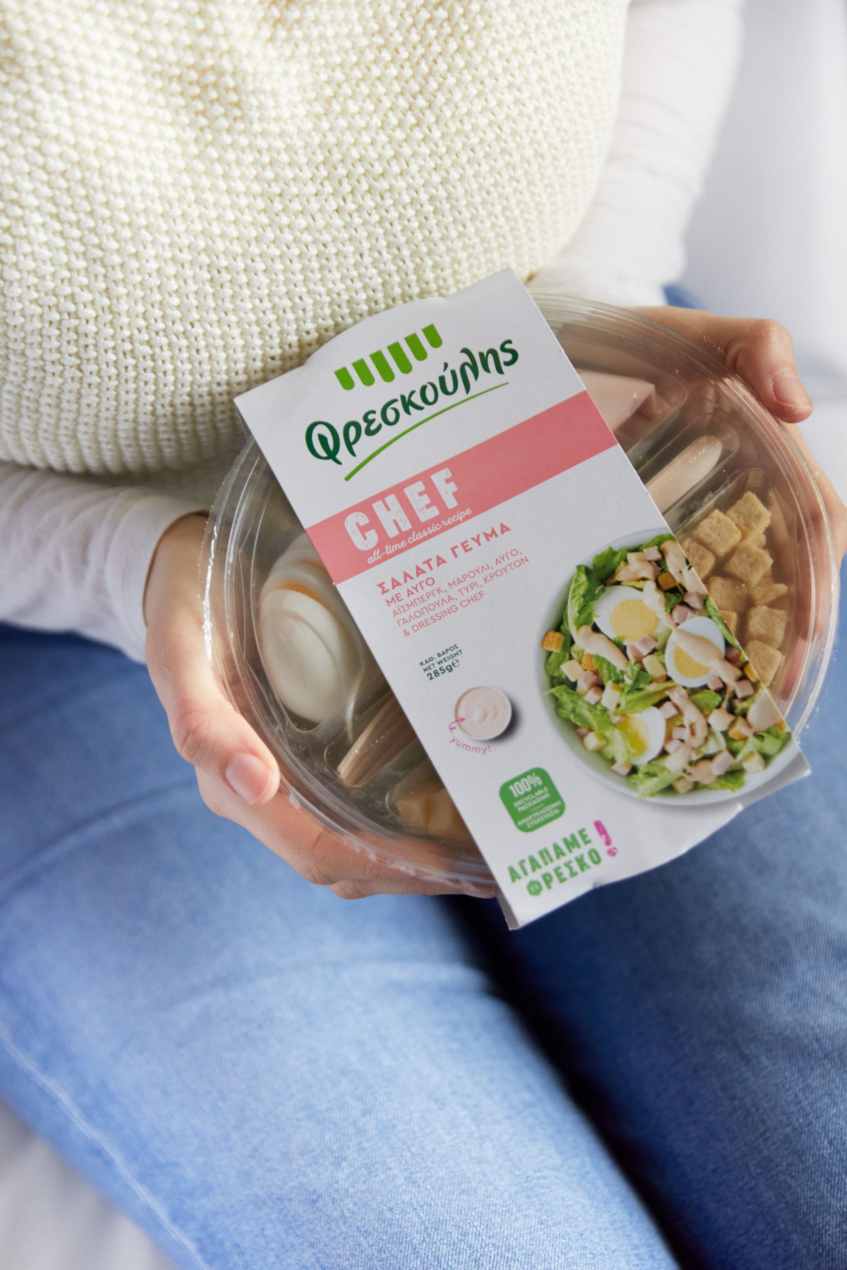 Με την προσθήκη της Chef, η σειρά Σαλάτες Γεύματα του Φρεσκούλη αριθμεί πλέον 8 διαφορετικές συνταγές: cobb, chef, caesar’s, tuna, caprese, Italian, quinoa και caesar’s vegan, καλύπτοντας κάθε διατροφική προτίμηση και ανάγκη.