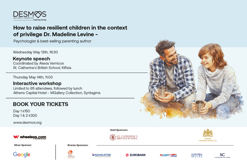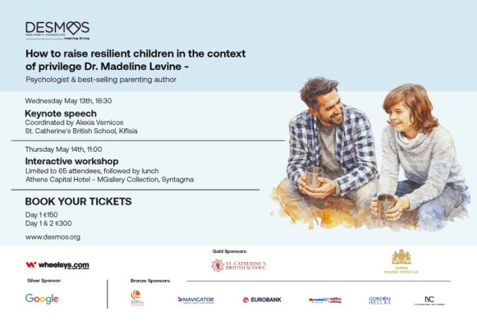 Το μη κερδοσκοπικό σωματείο Δεσμός, πιστό στην αποστολή του για ουσιαστικό κοινωνικό αντίκτυπο, διοργανώνει δύο μοναδικές εκδηλώσεις με τη διακεκριμένη κλινική ψυχολόγο Dr. Madeline Levine. Με τίτλο «Πώς μεγαλώνουμε παιδιά με ανθεκτικότητα σε ένα περιβάλλον προνομίων;», η συγγραφέας των best sellers των New York Times έρχεται για να προσφέρει πολύτιμα εργαλεία σε γονείς και εκπαιδευτικούς.